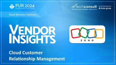 Zoho wurde im diesjährigen Professional User Rating – Cloud BusinessSolutions (PUR CBS) im Lösungsbereich „Cloud CRM“ von techconsult als Champion ausgezeichnet. Die Anwenderinnen und Anwender des Zoho CRMs betonten diverse Besonderheiten der Lösung sowie des Anbieters, die im Verlauf dieser Vendor Insights beleuchtet werden.