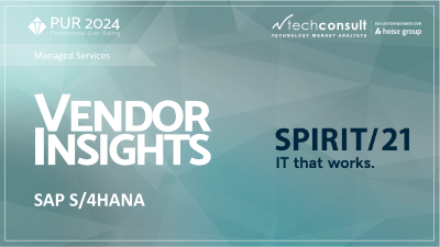 SPIRIT/21 hat im Professional User Rating – Managed Services 2024 in der Kategorie „SAP S/4HANA“ die Auszeichnung als Champion erhalten. Die Nutzerinnen und Nutzer der SAP Managed Services hoben verschiedene Besonderheiten von SPIRIT/21 hervor, die innerhalb der SPIRIT/21 Vendor Insights näher beleuchtet werden.