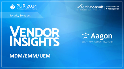 Aagon hat im diesjährigen Professional User Rating – Security Solutions (PUR S) im Lösungsbereich „MDM/EMM/UEM“ die Auszeichnung als Champion ergattern können. Die Anwenderinnen und Anwender ihrer Lösung betonten diverse Besonderheiten von Aagon, die im Verlauf dieser Vendor Insights beleuchtet werden.