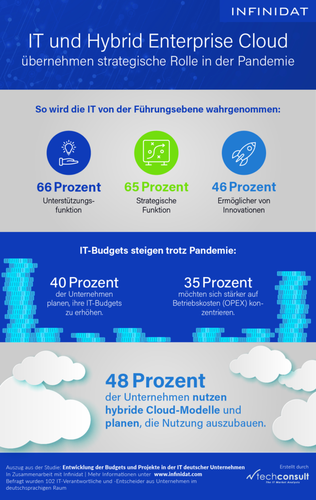Infografik: Entwicklung IT-Budgets in der Pandemie – Hybride Cloud-Modelle
